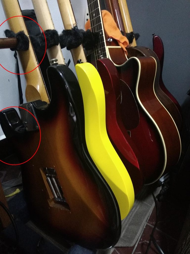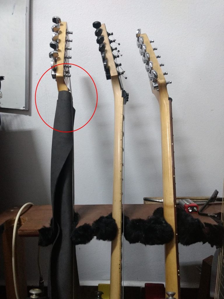 Os suportes de parece não são ruins, pois vão segurar o headstock tranquilamente sem forçar muito, mas você acaba tendo outro problema, principalmente em lugares muito úmidos.